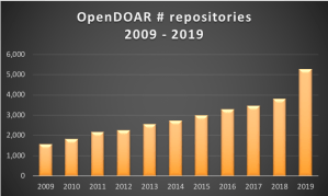 llections, and a 48% increase in software. The number of articles searchable through DOAJ grew by over 900,000 in 2019 (25% growth). OpenDOAR is taking off in Asia, the Americas, Africa, and overall, with more than 20% growth in each of these categories, and SCOAP3 also grew by more than 20%.