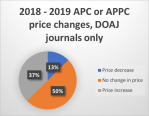 Morrison (2019b) studied status and charging trends for journals included in Solomon & Björk’s (2012) 2010 study, limited to a sample of journals listed in DOAJ and charging APCs at that time. The majority of these journals are still active and charging. The average APC has increased in this time frame by 50%, more than 3 times the inflation. Not all journals have increased in price; some decreased and others remained the same price. Nearly a quarter of these journals have ceased or are not found. Most of this attrition appears to be due to new OA APC-based commercial publishers with a start-up strategy of publishing a wide range of journals, then retiring unsuccessful journals.