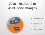 Morrison (2019a) studied charging trends for journals with APC amounts for both 2018 and 2019 and found considerable variation. Most of these journals did not change in APC, but many decreased prices and many more increased prices. The tendency to increase prices was more marked for journals listed in DOAJ as of Jan. 31, 2019. An analysis of trends and average APCs for publisher with 2 or more journals in this set revealed very different patterns. A few publishers did not increase prices. Ubiquity Press stands out as having a relatively low price and no price increase. For some publishers, tendency to decrease and increase prices cancel each other out. 6 publishers had average price increases of more than 10%: Wolters Kluwer Medknow, MDPI, Oxford, Elsevier, BioMedCentral, and Frontiers.